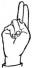 На ћирилици написано МИХАЈЛО МЕЧАНИН састоји се из 14 слова [?]. Исписано ћириличном једноручном азбуком за глувонеме: